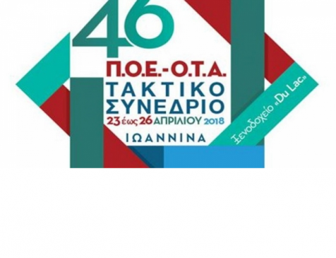 Ολοκληρώθηκαν οι εργασίες του 46ου Τακτικού Συνεδρίου της Πανελλήνιας Ομοσπονδίας Εργαζομένων Οργανισμών Τοπικής Αυτοδιοίκησης (Π.Ο.Ε.-Ο.Τ.Α.) που διεξήχθη από τις 23 έως τις 26 Απριλίου 2018 στα Ιωάννινα.