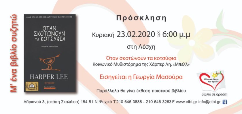 Η Ελληνική Λέσχη Βιβλίου (Αδριανού 3 Νέο Ψυχικό, τηλ. 210 6463888 και 2106463263) συνεχίζοντας το πρόγραμμα «Με σένα …’’για σένα’’», διοργανώνει το Σάββατο 13 Απριλίου 2019 και ώρα 7 μ.μ., στο ξενοδοχείο Αμαλία, Αμαλίας 10 στο Σύνταγμα, το ετήσιο μουσικό απόγευμα της Λέσχης.