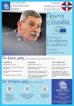 Ο πρόεδρος της ΠΑΤ.ΡΙ.Ε. και Ευρωβουλευτής Στρατηγός Ελευθέριος Συναδινός ανάμεσα στους 751 Ευρωβουλευτές έλαβε: