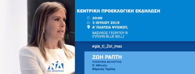 Ζωή Ράπτη-Κεντρική προεκλογική ομιλία Α’Πλατεία Ψυχικού-3 Ιουλίου & ώρα 20:00 1 Ιουνίου 20198 Ιουλίου 2019 Τοπικά Νέα Αν θέλετε ακολουθήστε μας, κοινοποιήστε ή κάνετε like: Ζωή Ράπτη-Κεντρική προεκλογική ομιλία Α’ Πλατεία Ψυχικού – 3 Ιουλίου & ώρα 20:00 Αν θέλετε ακολουθήστε μας, κοινοποιήστε ή κάνετε like: