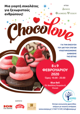 Το Σαββατοκύριακο 8 και 9 Φεβρουαρίου 2020, στην Α’ πλατεία Ψυχικού (Blue Bell) διοργανώνεται μια ξεχωριστή γιορτή σοκολάτας με το σύνθημα Chocolove που έχει σαν στόχο να ευαισθητοποιήσει τους κατοίκους του Νέου Ψυχικού, της  Φιλοθέης, του Ψυχικού και όχι μόνο για τα παιδιά με νοητική υστέρηση της Εστίας.