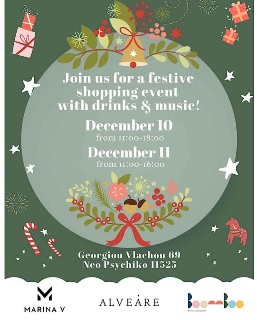 TOP WOMAN ΜΟΔΑ Ένα εορταστικό διήμερο shopping event Σάββατο 10/12 από τις 11-18.00 & Κυριακή 11/12 από τις 11.00 έως τις 16.00 στην οδό Γεωργίου Βλάχου 69 στο Νέο Ψυχικό. 3 Besties – 3 brands ! 3 αγαπημένες φίλες δημιουργικές & πρωτοπόρες ενώνουν τις δυνάμεις τους αλλά και την …. χαρά τους και σας προσκαλούν σε ένα κεφάτο shopping event το ερχόμενο Σαββατοκύριακο: όμορφα ρούχα και πλεκτά, κοσμήματα γούρια αλλά και οικολογικά παιχνίδια θα καλύψουν τις ανάγκες σας για όμορφα και πρωτότυπα δώρα. Η Μαρίνα Βάρτσου με τα μοναδικά πλεκτά…