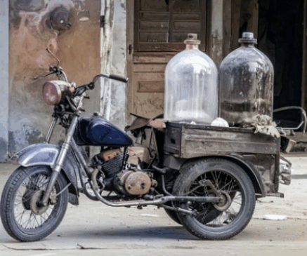 Πάνω στην τρίκυκλη μοτοσικλέτα του βρίσκονταν τρεις μεγάλες κοντόχοντρες μπουκάλες ντυμένες με ψαθί και τσέρκι, ενώ ο στόμιό τους έκλεινε με φελλό. Ο νεαρός μικροπωλητής ήταν ψηλός, αδύνατος, ξανθός, γαλανομάτης, κοκκινοπρόσωπος –ίσως λόγω της καλοκαιρινής ζέστης- και με αραιά μαλλιά. Σε λίγα μόλις λεπτά πλάι στις μπουκάλες της κυρίας Άννας στέκονταν παρατεταγμένες στη σειρά οι μπουκάλες της μητέρας μου και εκείνες από καναδυό άλλες γειτόνισσες. Ο νεαρός έβαλε την άκρη ενός δίμετρου σχεδόν λάστιχου ποτίσματος σε μία μεγάλη μπουκάλα που περιείχε χλωρίνη χύμα και την άλλη άκρη του λάστιχου την έβαλε ανάμεσα στα χείλη του κι άρχισε να ρουφάει.