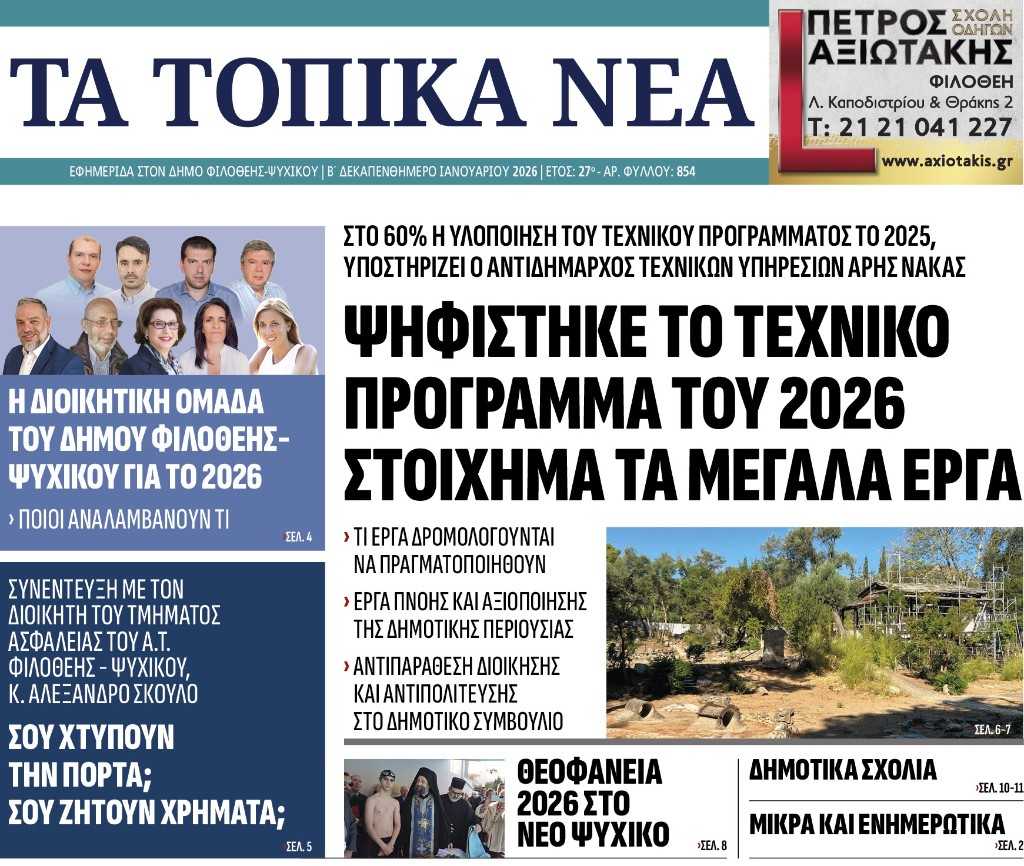 ΠερισσότεραΤα τοπικά νέα, τεύχος 854, Ιανουάριος 2026