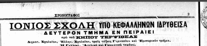 Το φιλόδοξο εγχείρημα ενός προτύπου σχολείου. Το όνομα αυτού: Ιόνιος Σχολή
