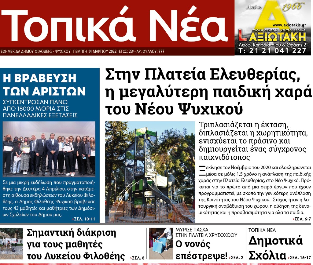 τοπικά νέα, αρ.φύλλου 777 – 14 Απριλίου 2022 11 Απριλίου 202215 Απριλίου 2022 Τοπικά Νέα https://issuu.com/top_nea/docs/no_777_low Περισσότερα