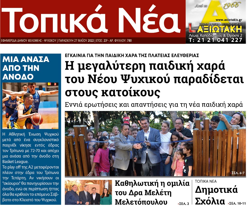 τοπικά νέα, αρ.φύλλου 780, 27-5-2022 26 Μαΐου 2022 Τοπικά Νέα https://issuu.com/top_nea/docs/no_780 Περισσότερα