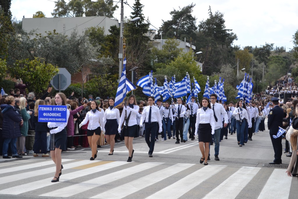 Πλήθος κόσμου και δυναμική συμμετοχή περισσότερων από 2.500 μαθητών και φορέων Της Όλγας Μενεμενόγλου Με τη συμμετοχή πλήθους πολιτών, εκπροσώπων των τοπικών αρχών, του Ιερού Κλήρου και φορέων της πόλης, γιορτάστηκε και φέτος με ιδιαίτερη λαμπρότητα η Εθνική Επέτειος της 25ης Μαρτίου στον Δήμο Φιλοθέης – Ψυχικού. Οι εκδηλώσεις ξεκίνησαν με την επίσημη δοξολογία και την εκφώνηση των πανηγυρικών στους Ιερούς Ναούς Αγίας Σοφίας Νέου Ψυχικού, Αγίας Φιλοθέης και Αγίου Δημητρίου Ψυχικού. Τους πανηγυρικούς εκφώνησαν μαθητές και μαθήτριες των σχολείων της περιοχής: στη Φιλοθέη η μαθήτρια του Λυκείου Φιλοθέης «Χρήστος…