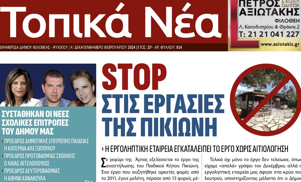 Τοπικά νέα, τεύχος 814, Φεβρουάριος 2024 8 Φεβρουαρίου 2024 Τοπικά Νέα Α’ Δεκαπενθήμερο Φεβρουαρίου 2024 Πατήστε εδώ για να την διαβάσετε: Περισσότερα